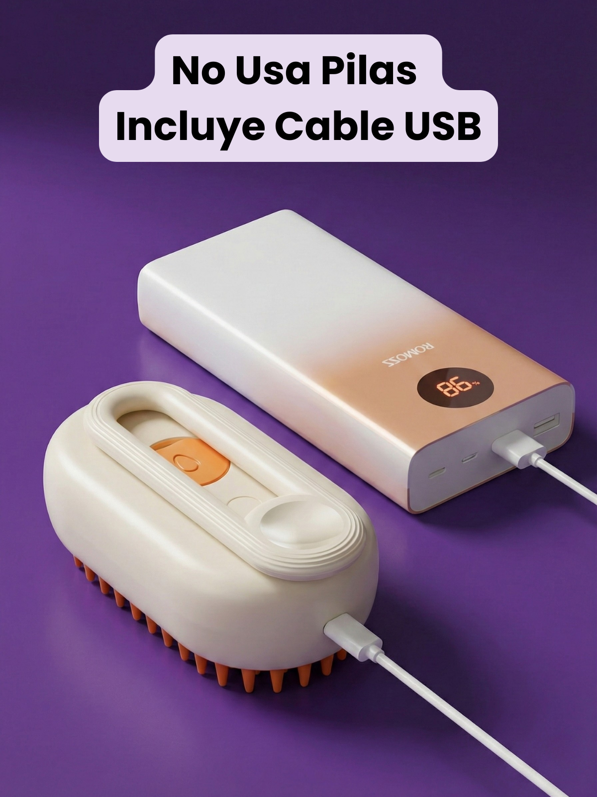 Llena el depósito, activa el vapor y cepilla suavemente siguiendo el pelaje. Para nudos, mantén el vapor unos segundos. Limpia el cabezal y recárgalo por USB para la próxima sesión.
